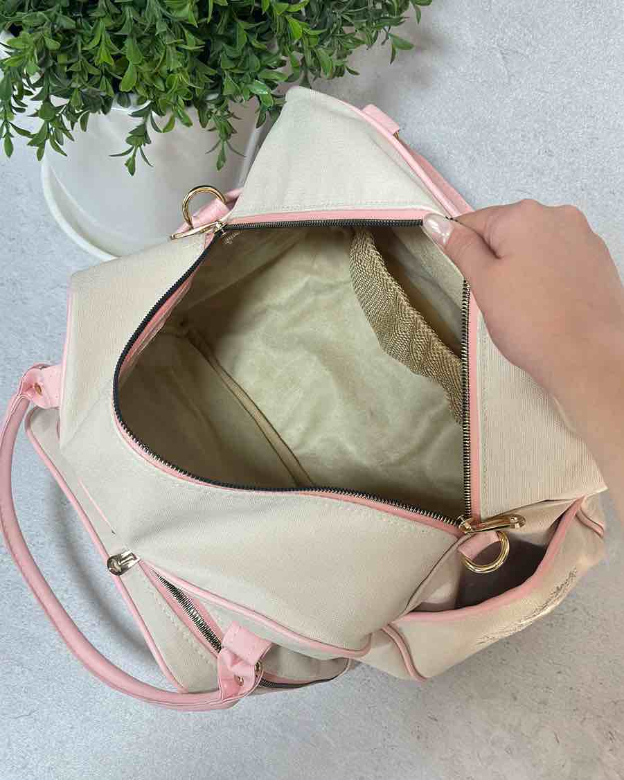 داخل کیف تقسیم بندی شده ، جنس استر داخلی سوییت هست ، دارای بند رو دوشی ، قابل استفاده به صورت دستی و دوشی